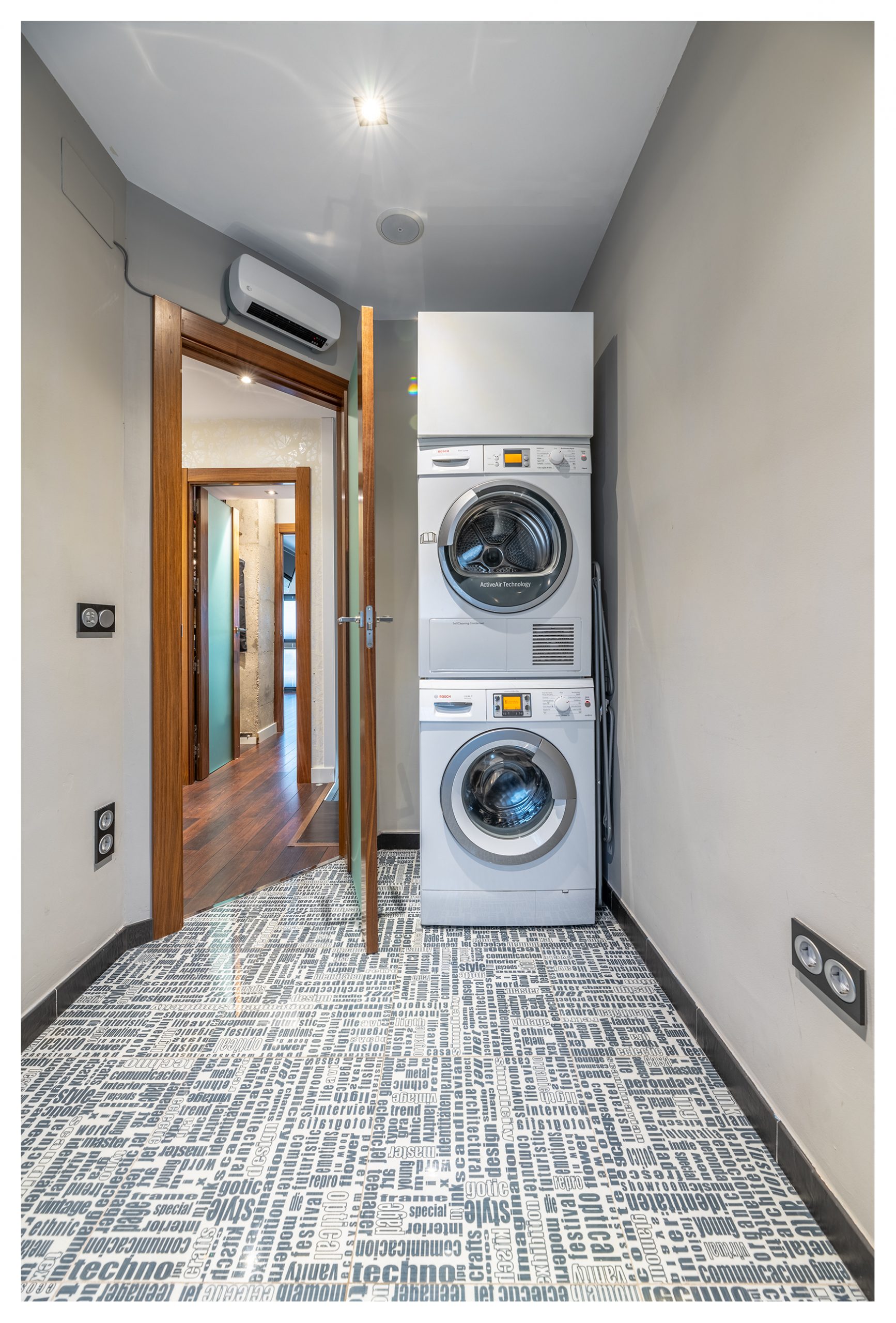 En esta misma planta nos encontramos un cuarto dedicado a lavandería, donde además del termo de agua caliente programable digitalmente, disponemos de una lavadora y secadora Bosch de última generación con gran capacidad de carga.